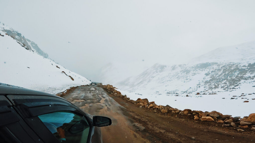 கோடை காலத்தில் கூட இவ்வளவு அளவில் பனி உறைந்து இருப்பது உண்மையிலேயே ஆச்சரியத்தை அளித்தது. சில இடங்களில் பனி உருகி மீண்டும் உறைந்ததால் சாலை சற்று கரடுமுரடானதாக இருந்தது.